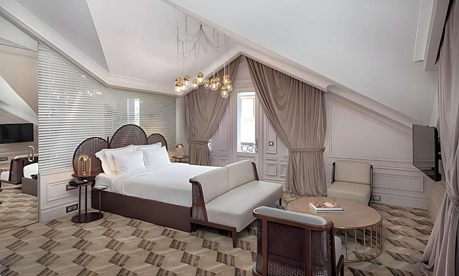 Featuring a 13 feet mansard roof and a terrace with panoramic view of Bosphorus, Ortakoy Mosque, Old City and Maiden Tower, this 184 ft² suite has a separate living room and a dining area. There is a freestanding bathtub in the spacious, glass-walled bathroom with a privacy blind.